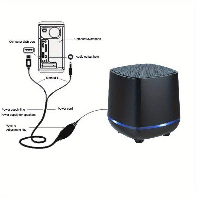 3D Surround Sound Round Speakers For PC - HiFi Stereo Portable Speakers With USB-C & 3.5mm Audio Jack, Vibrant RGB LED Lighting, Sleek Black Design - Ideal For Gaming & Home Theater Setups