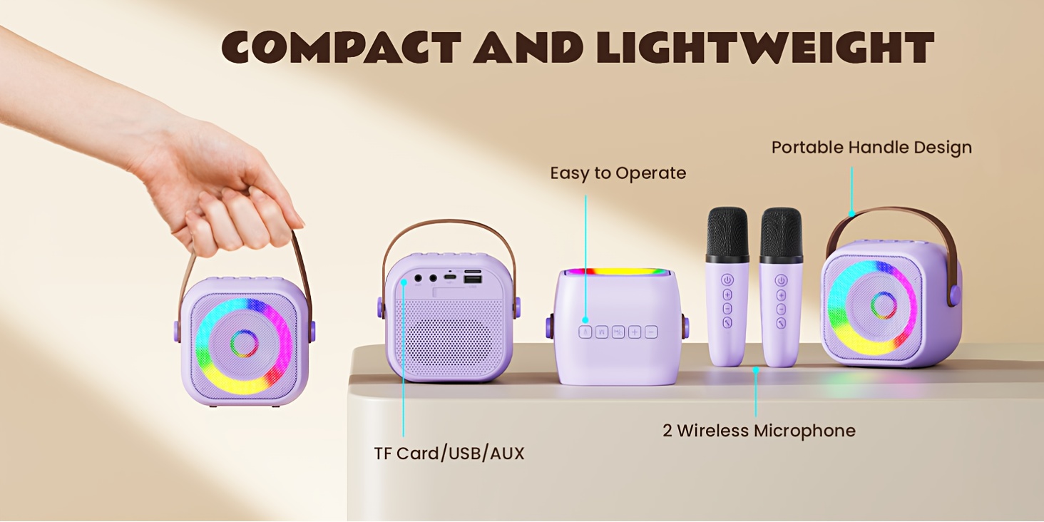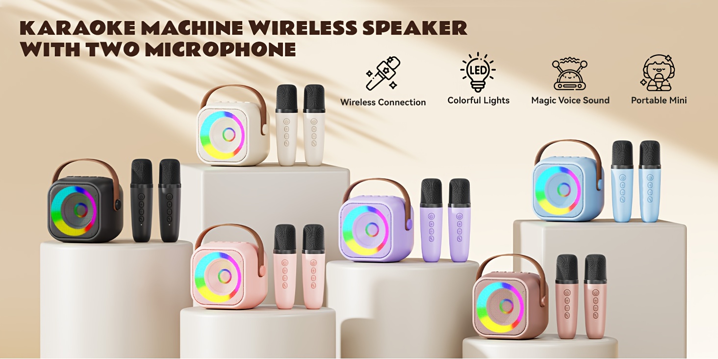 Portable Karaoke Machine, Wireless Speaker, Equipped With Dual Microphones, Rechargeable Lithium Battery, LED Party Light, Suitable For Smartphones, Tablets And Home Entertainment
